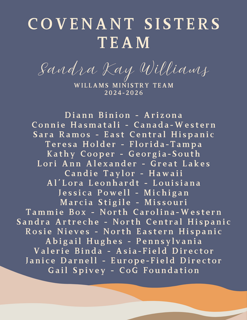 Covenant Sisters is the USA missions emphasis of International Women’s Discipleship for the purpose of empowering team members to concentrate resources on specific ministry projects including: Leadership Development, Evangelism, Ministerial Training, Church Planting, Strengthening of Existing Churches, and Women’s Discipleship. The focus of the covenant is encouragement, prayer and kingdom building. The primary goal is to provide opportunities for affirmation, networking, fellowship, encouragement, bonding and personal support for all women within the leadership of the Covenant Ministry Teams.